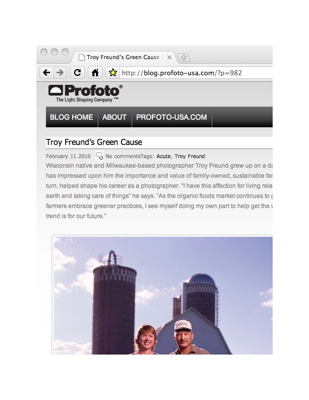 self-promotion: PROFOTO BlogFebruary 11, 2010UncategorizedProfoto, manufacturers of the lighting equipment I use, just released a profile with me at their official blog! See it here! Thanks, Profoto; I love your gear! Post navigation← pro bono: Painting for TheatreLocal Biz: Gravity Marketing, LLC →