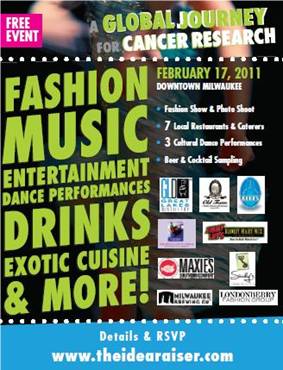 There’s an exciting event that will be taking place downtown Milwaukee on February 17th. The event,theIDEAraiser: A Global Journey for Cancer Research is from 5-9pm on Thursday, February 17th and is taking place in the Historic Third Ward at 325 N. Plankinton Avenue.