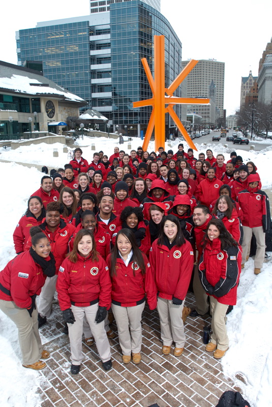 City Year MKE is represented by a very diverse group of young adults, aged between 17-24 years old. These impressive folks work full-time as tutors, mentors and role models in some of Milwaukee’s underperforming, high-poverty schools. These role models help students to achieve more in school and to increase graduation rates! This year there are 70 corps members serving in 8 Milwaukee Public Schools. Because they are “near peers” City Year members are uniquely able to reach out to the students they work with.