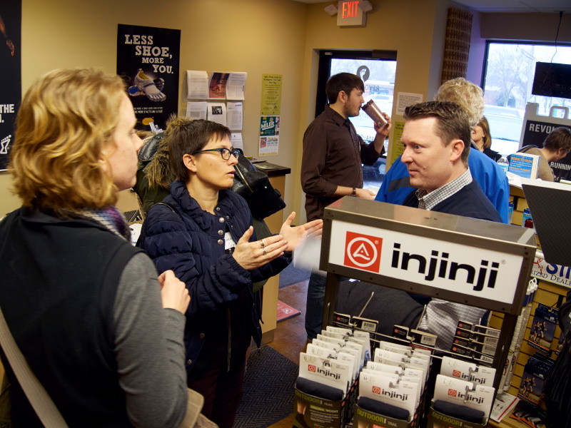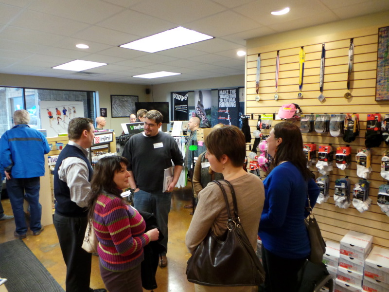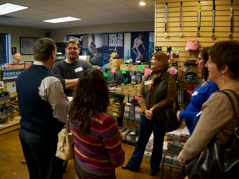 I was pretty excited to attend this “Third Thursday” at Revolution Natural Running, as I am a casual runner, and am real intrigued by “natural running” – that is, getting your feet closer to the group with lighter and thinner shoes. A lot of the regulars of LFM attended this event, and there were a few new faces too – like ECE Candles and Shift-It Life Coach and Graphic Recorder!
