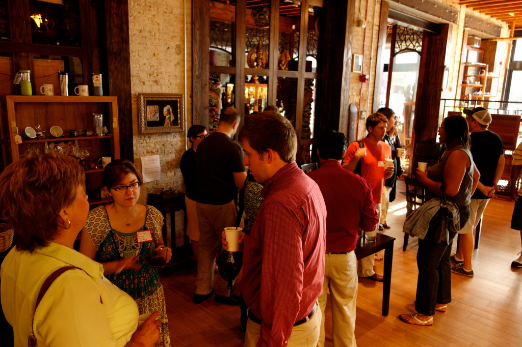 This morning’s “Third Thursday” networking session was hosted by Jennifer Nowicki, at the Verduras Tea House and Cafe. As always, a bunch of Local First Milwaukee members came out to meet, re-connect, and catch up with each other.