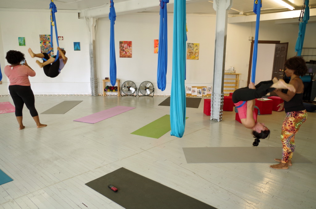 Therese teaches regular yoga as well, but really, what makes her studio special is the offering of aerial yoga! If you’re looking for a new workout (and trust me, it IS a workout), you should consider visiting her studio and trying out a class. I wasn’t sure what to expect when I visited, but I’m very glad I stopped by!