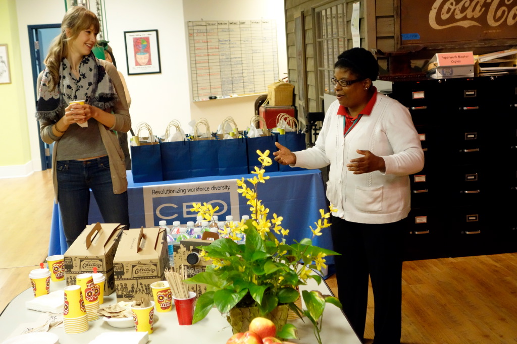 This morning, the business reps of Local First Milwaukee met up at Creative Employment Opportunities, in downtown Milwaukee! Creative Employment Opportunities (CEO) is a very unique staffing agency. It was very suitable that CEO hosted this month’s Third Thursday, as October is National Disability Employment Awareness Month. CEO works with people who are physically and mentally disabled to find them long-term work opportunities. At today’s event, Cindy Bentley was present to tell us about how CEO has served her. She’s been working in the community for over 20 years, thanks to the help of CEO!