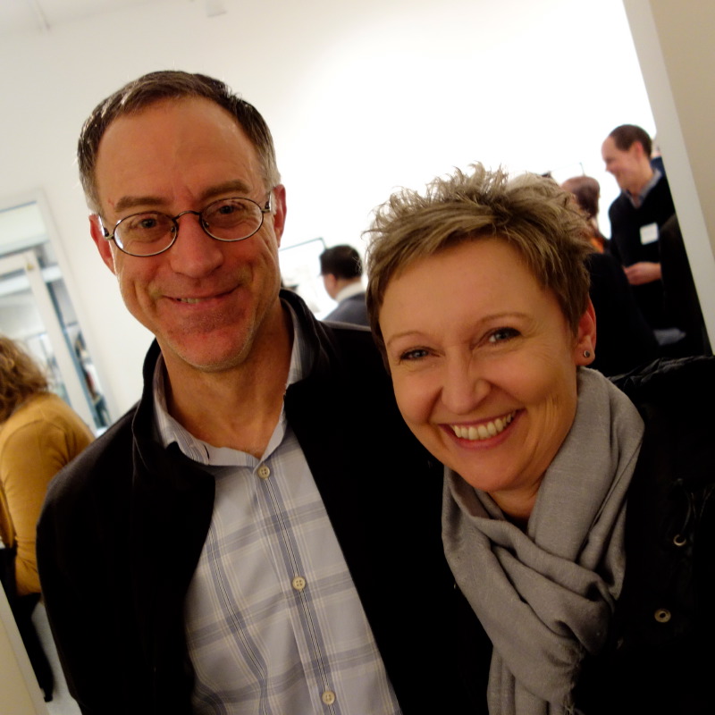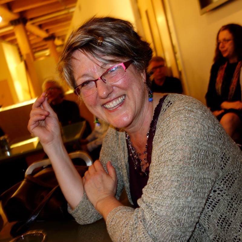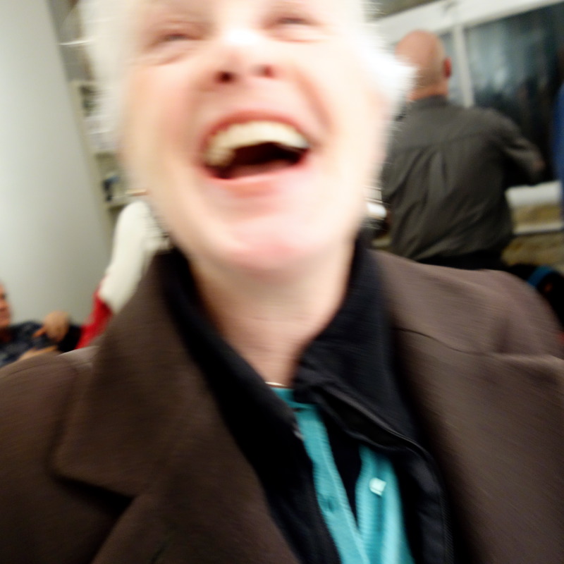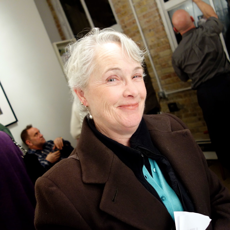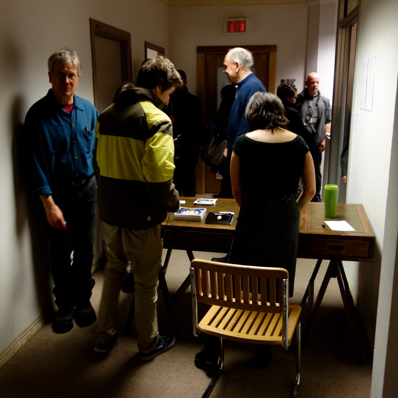 This evening was like a Gallery Night outing – basically too busy to be able to look at the art well, but a wealth of opportunity to see friends I haven’t seen in a while! I went with my friend, Prem, and saw Trish Hundhasen, Katie Berg-Donoghue, Frank Ford, Barbara Miner, Mary and David Osmundsen, and Jessica Quist. I also made new friends with Anna, a 30-year librarian at Milwaukee Public Library, and her son, Ian. Man, there was just not enough time to talk with everyone I wanted to!