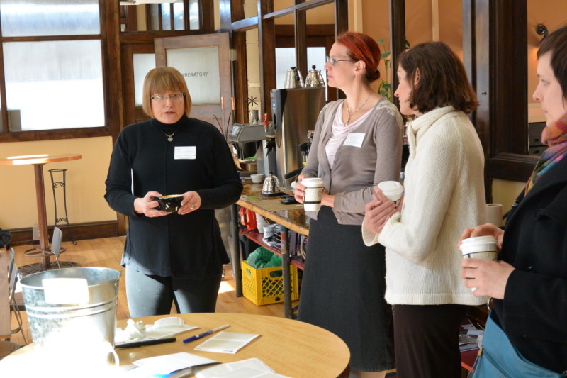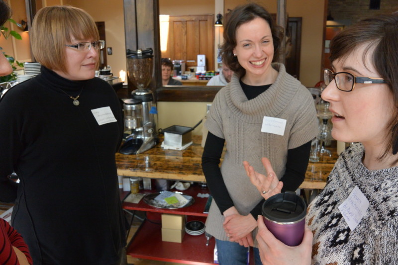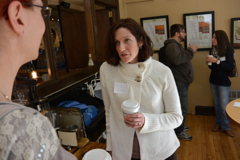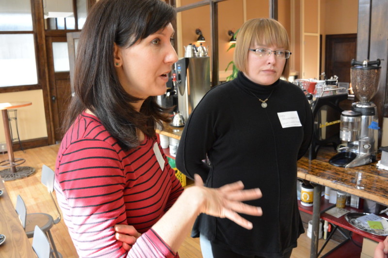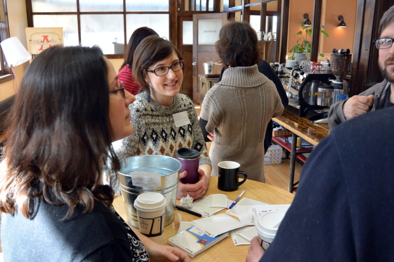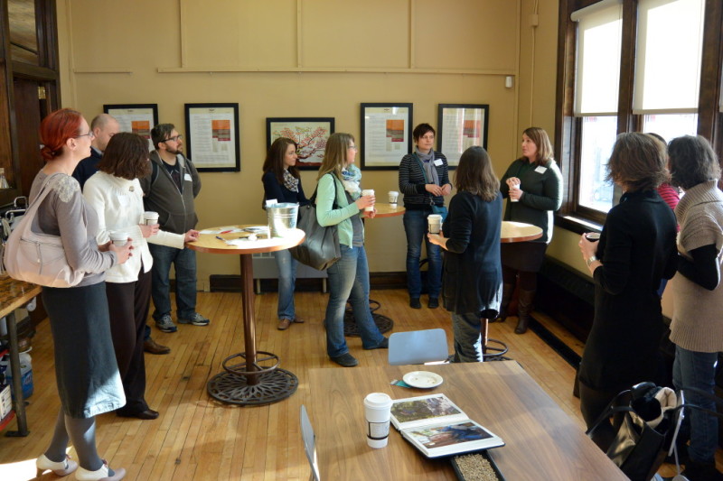 Together, we reached out to all the creatives we knew, many we didn’t know but hoped to meet, and to people who hire creatives. The Big Shoes Network kindly donated some door prizes in the form of “Premium Listings” at their site’s directory! Anodyne Coffee was generous enough to let us use their meeting room for our MKE Creatives event, and on Feb 26, a whole lot of us came out to chat, connect, and enjoy great coffee!