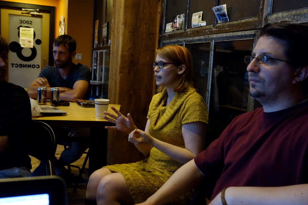 Last night’s MKE Comicbook meet-up at Gravity Connect was a good art-centric one, as we discussed the favorite sequences or splash-page moments in our collections. It was fun discussing the nuances of pacing, panel-size variations, and the distinction between merely illustrating a script and creating images that move the readers’ eyes from one panel to the next. Some people brought the printed versions of their comics to share, and for others, we viewed them projected on a screen.
