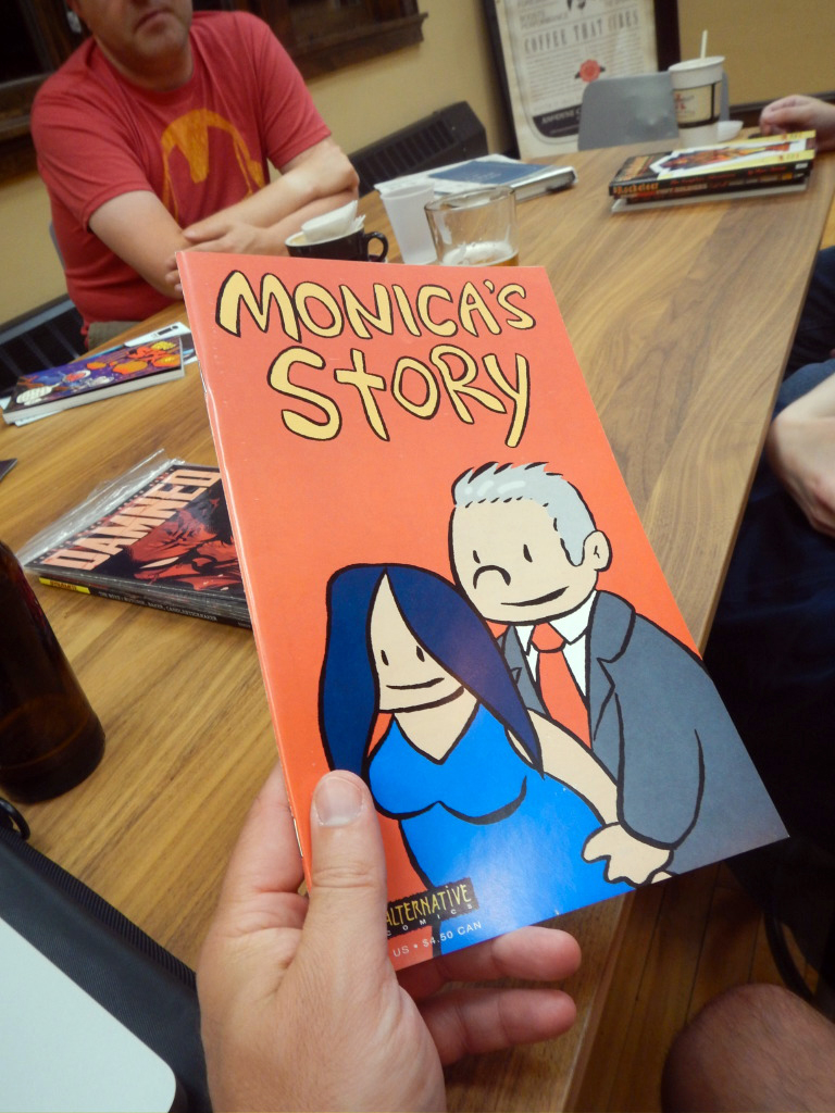 -“Monica’s Story,” a funny cartoonish bio-comic about the Clinton scandal, from Alternative Comics