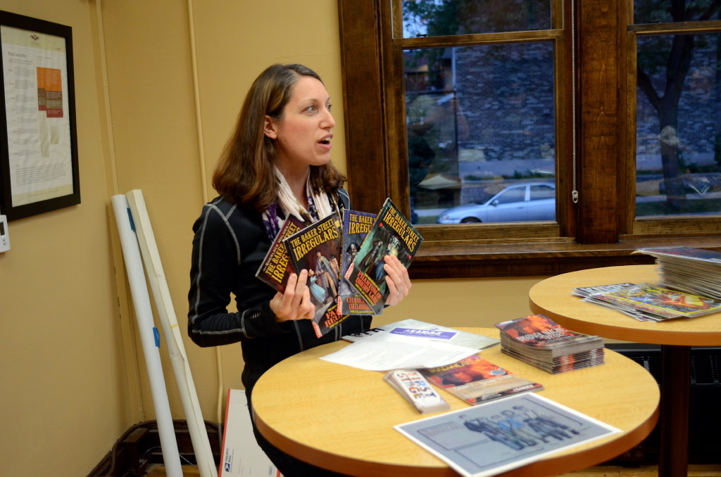 Jennifer Hubbartt, of the First Stage Theatre, stopped by and told us about their upcoming show – “Sherlock Holmes: The Baker Street Irregulars” (based on a series of graphic-novels) (they’re even having a “Steampunk Night” on Oct 18) – and gave a door prize of two free tickets to a lucky comicbook reader. Emilo de Torre of the WI ACLU was also present and gave us bookmarks listing books that were recently talked about during Banned Books Week. It was really exciting being in a room full of people passionate about comicbooks, art, the performing arts, and civil rights! What a blast!