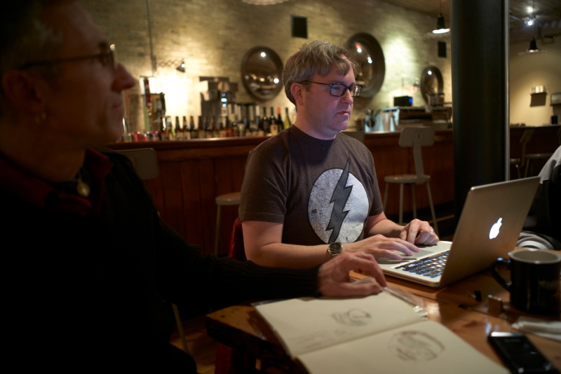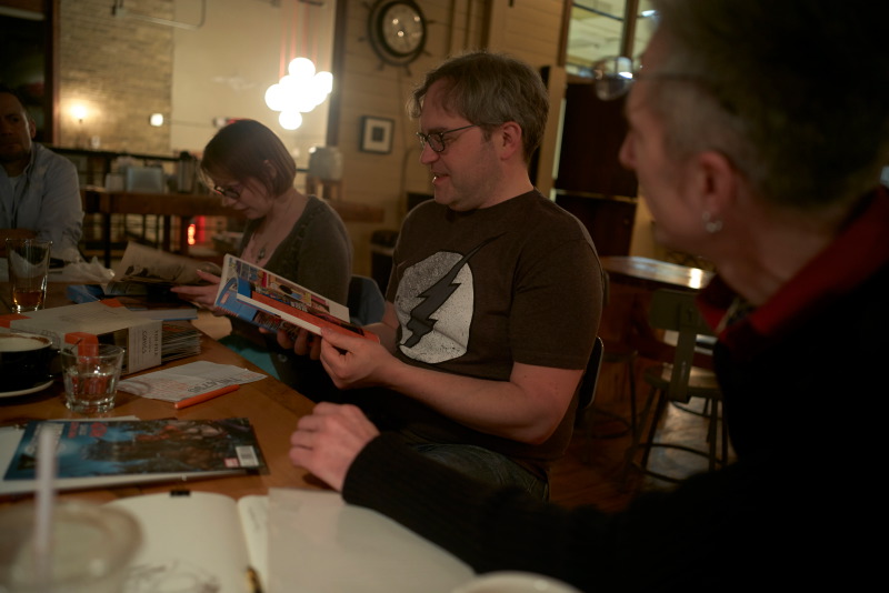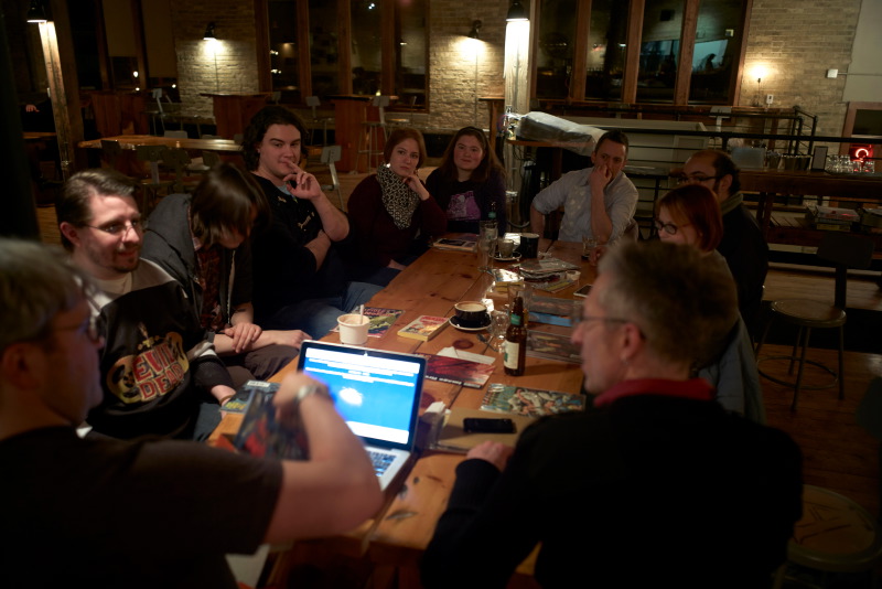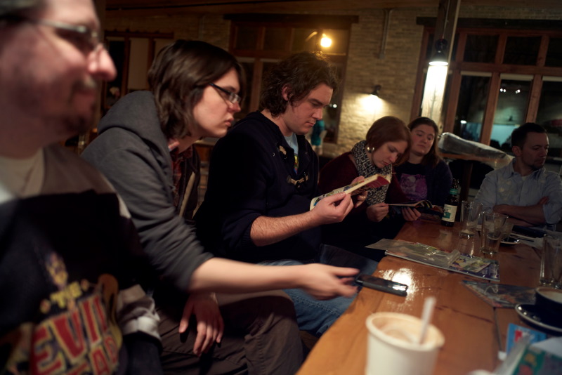 The first MKE Comicbook of 2015, at Anodyne Coffee, in Walker’s Point, started the year off with a bang! The evening featured a very engaged discussion of people’s favorite guest appearances, first appearances, and cross-over issues and another great Jeopardy-style trivia contest put together by Don. What I loved about this evening is the same thing I’ve enjoyed in every meet-up we’ve had – the variety of books that get mentioned and the passion people have for comicbooks! It really is a fun evening!