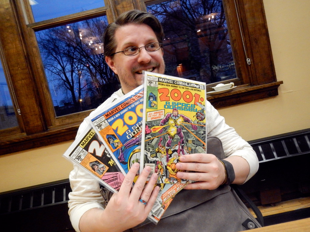 Luke showcased “Sentinel“, a 2003 McKeever/Udon series from Marvel – a fun story about a boy and his giant, purple, killer-robot-turned-friend. What made Sentinel especially neat is that it was set in Antigo, WI! Luke also showed off his recently acquired “2001: A Space Odyssey” series from 1977, which featured the purple-costumed X-51 – the Machine Man.