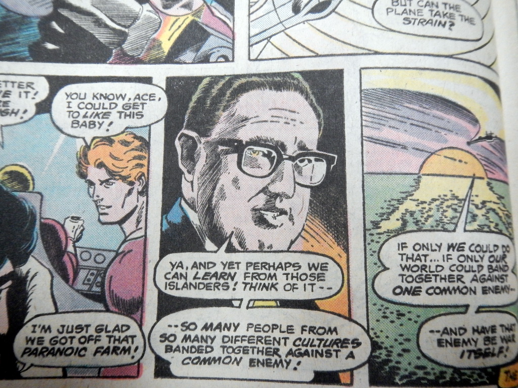 Skrauss brought a few late-70s/early-80s beauties. His 1976 issue of “Challengers of the Unknown” featured the Challengers’ purple uniforms, and guest appearances by Henry Kissinger and Gerald Ford, and the mystery of the Bermuda Triangle! A 1980 Superboy had Supes traveling to a “duplicate world” where his house is PURPLE, there was a strange, purple burrowing machine called the Ground-Guzzler, and Supes battled a giant purple ant! Justice League of America 189, (1981), featured the villainy of Starro the Conqueror – the giant, intergalactic, mind-controlling, planet-defeating, purple starfish!