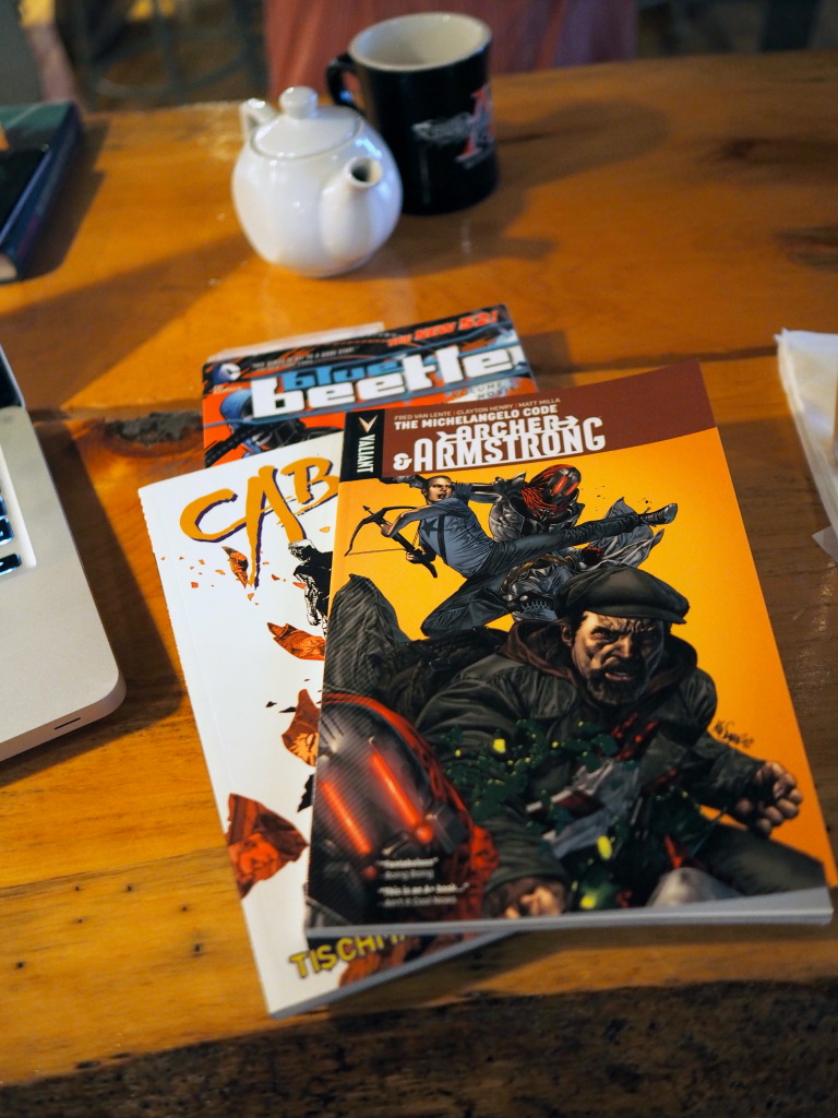Shawn has also been enjoying DC’s reboots of Justice League (really enjoying the banter between Batman and Green Lantern, and the “upping” of Aquaman’s abilities) and Blue Beetle (taking a classic DC character and making a neat, fun new take with a young Latino taking on the role of Blue Beetle).