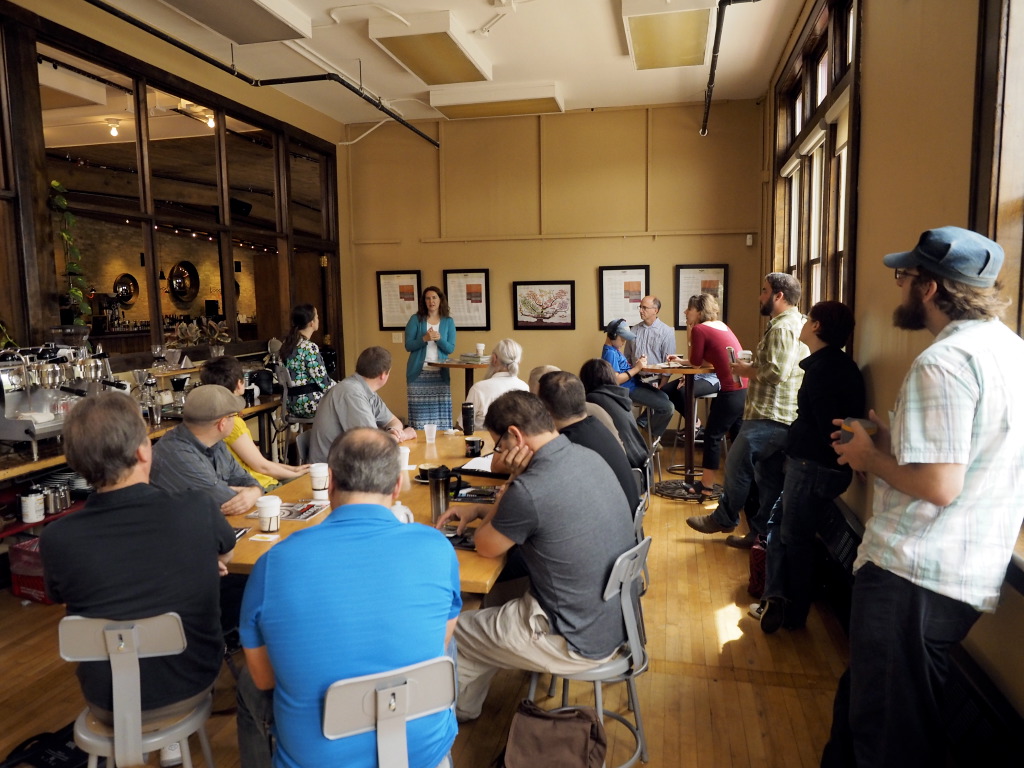 The value of this monthly meet-up continues to be in the sheer variety of people who attend. At Anodyne Coffee, we had the following professions in attendance: a travel/wine writer, a story-teller/actor, a small business accountant/investment manager, a writer who also works in brand development, a documentary film-maker, a stock-media agent, a web developer, graphic designers, photographers, a science writer, a visual artist, a nature/sciences writer, a wedding/event photographer, and a medical/parenting writer! To see who these fine folks are, LOOK HERE!