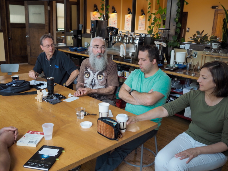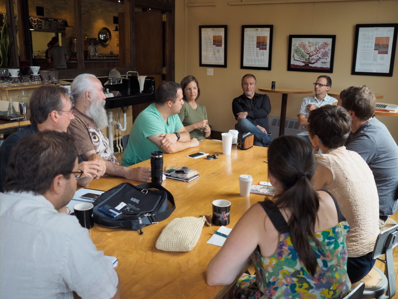 This month’s MKE Creatives featured a presenter we haven’t had in awhile – everyone who was there! Yep, this month instead of a presenter, we had a group discussion on the trials and tribulations of self-employment in the creative professions. What makes this meetup so valuable each month is not only the variety of creatives that attend and the swell coffee from Anodyne, but also the years of accumulated experience that get brought to the Anodyne Coffee table.