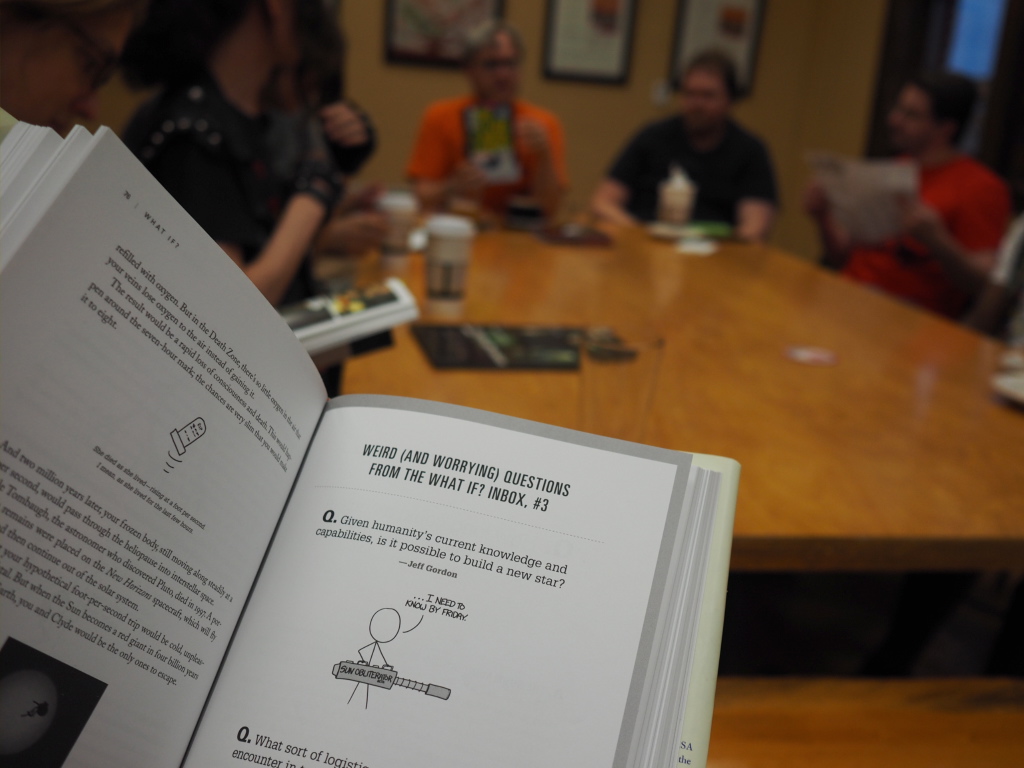 Dillon shared What if? Serious Scientific Answer to Absurd Hypothetical Questions, which sounds like an awesome book. Emilio went the classic route and brought archive editions of Eerie and Creepy, featuring lots of crazy science fiction (like an astronaut werewolf)