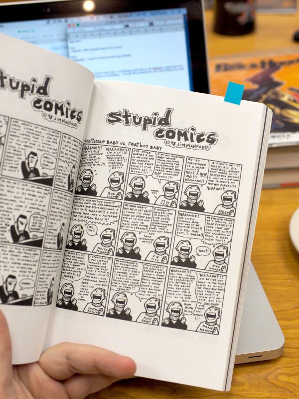 -The Expo SPX09 (Small Press Expo) – This was a lil anthology with a great strip by Jim Mahfood – “Scottsdale Baby vs Fratboy Baby”, and an easy way to try different stuff. Shawn finished reading the one-page strip and declared, “I just got done reading this, and it just reminds me of the GOP Debates!”