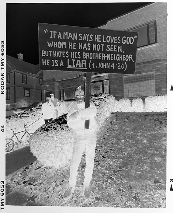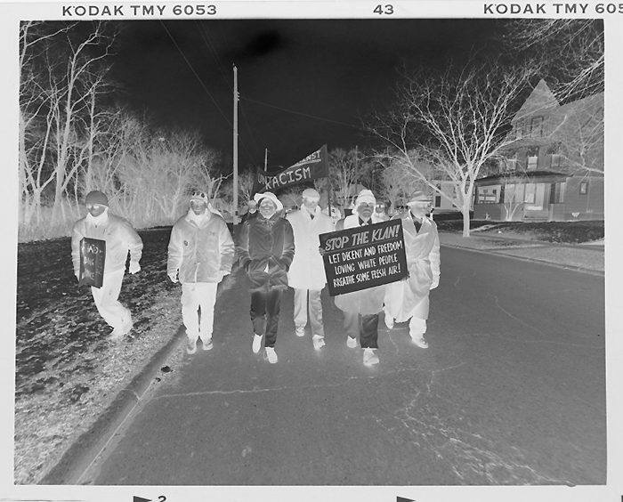 Here are some of the images I made in Beloit. I know these are just the negatives, but in this era of digital photography, there is something magical in seeing just the negative (there was even a book of photos, of famous negatives). I feel fortunate to have been able to go to that protest. In photography, you never know the value of the photos you make at the time you make them. You just try to do your best in that moment. Since making these photos, I’ve been lucky to collaborate with the ABHM to put an image of James Cameron to good use, to educating people that we NEED to be better. And we need to be aware of the shameful parts of our American history.