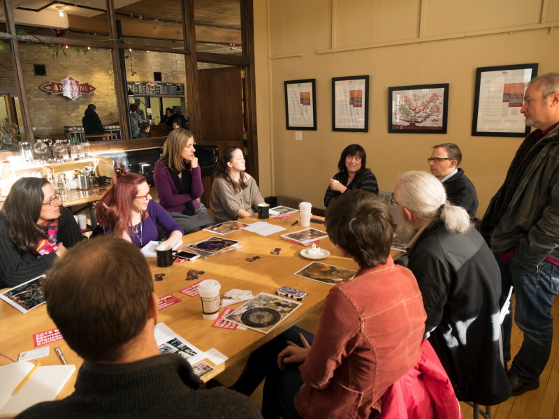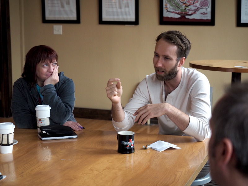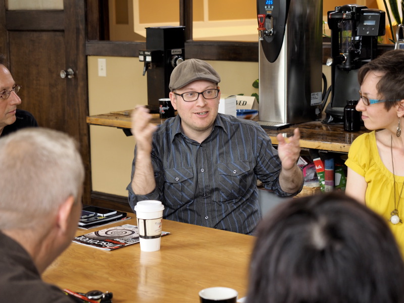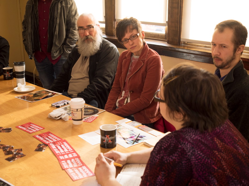 It was started by two writers and a photographer who knew many creatives in their respective professions, but not many in each other’s arenas. So, with the help of Anodyne Coffee allowing us to use their “laboratory”, we began meeting, and it’s been GREAT.