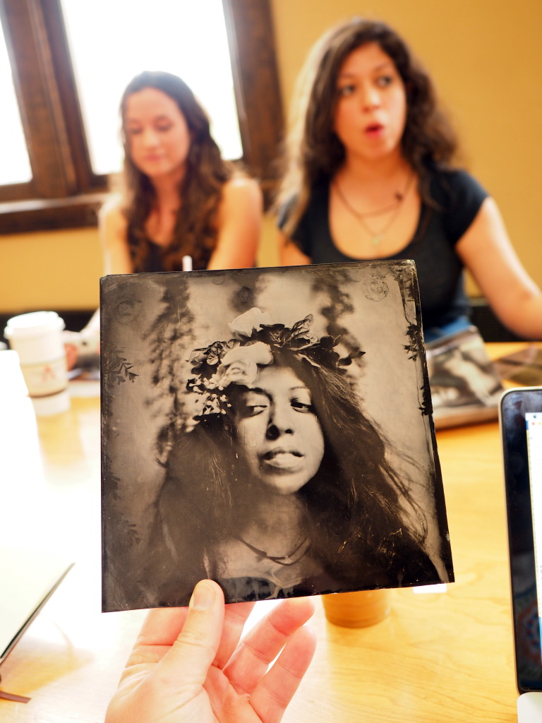 The May MKE Creatives was particularly interesting to me, as it featured a talk with two Milwaukee photographer-artists – Eileen and Margaret, of Gun Cotton Tintypes. These two women have recently ventured into photography, but not as many others do – with film cameras or digital SLRS, but with large-format cameras and vintage chemical processes!