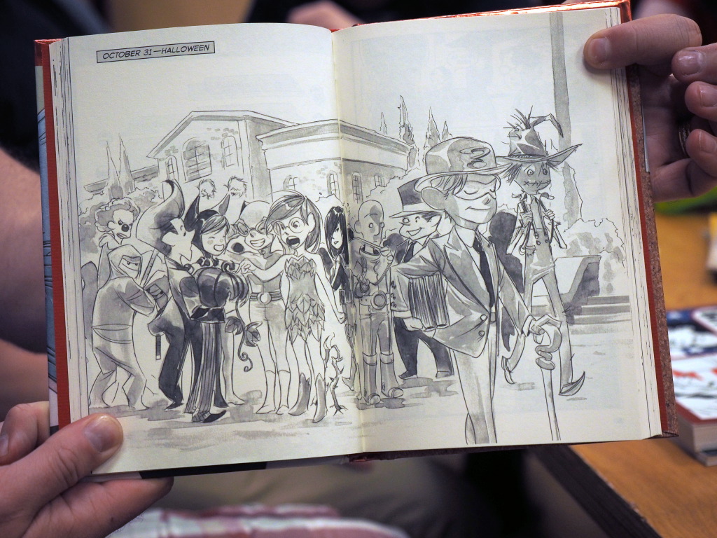 I brought a couple books of my own, too. I shared “All-New X-men”, written by Dennis Hopeless and drawn by Mark Bagley. Like many of the comics that originally got me hooked on comics, “All-New” has excellent super-heroics, but also real emotional weight in many of the characters’ interactions.