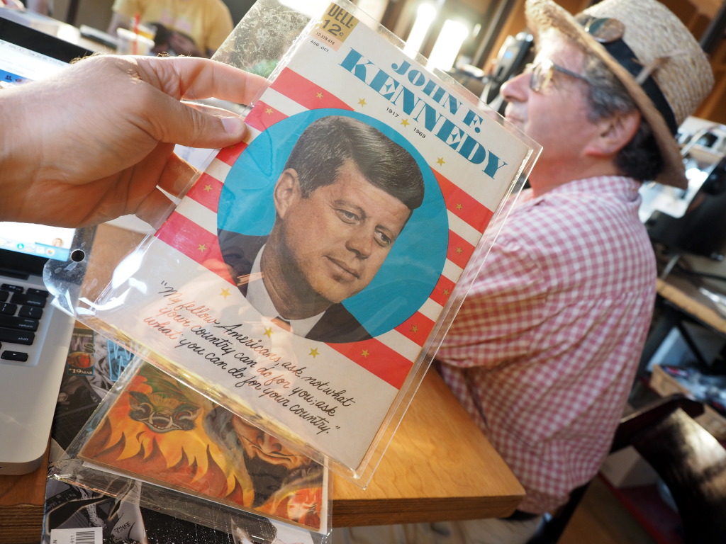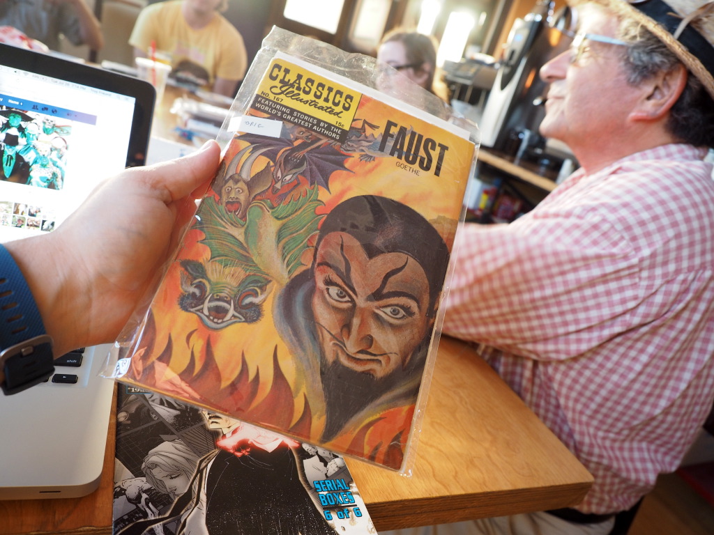 Emilio pulled the card “altar boys”, and appropriately shared a biographical comic about JFK, and a comicbook version of Faust!