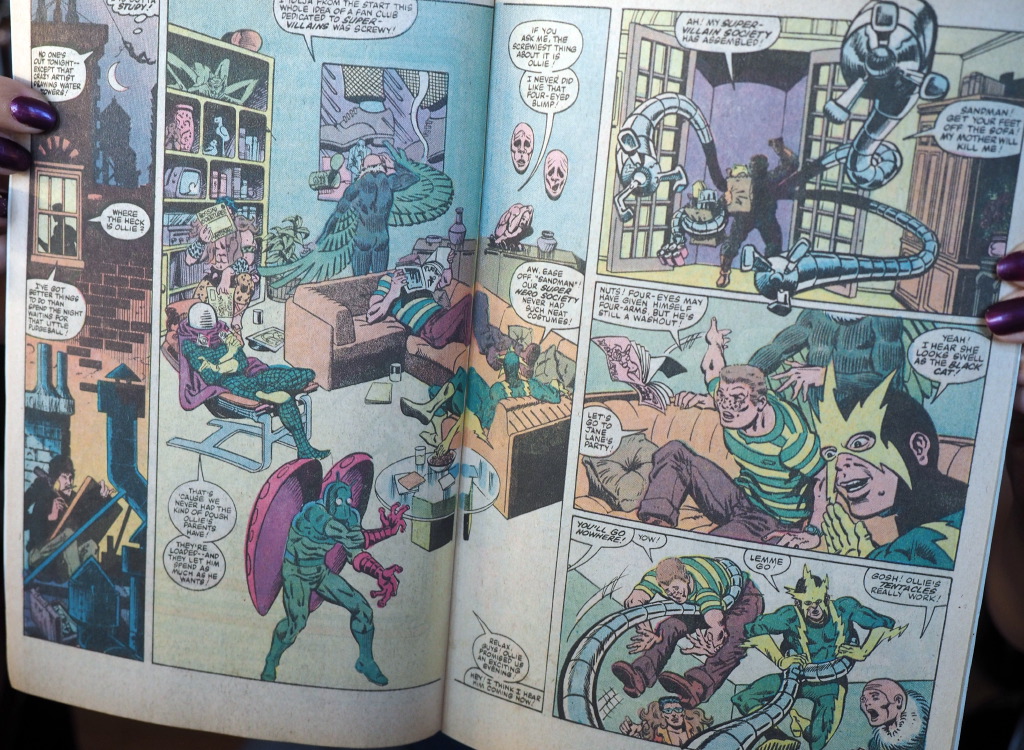 Amber drew “civilian casualties” and related that to an old issue of Spider-Man that featured, basically, some proto-cosplayers who had formed a fan club for the Sinister-Six.