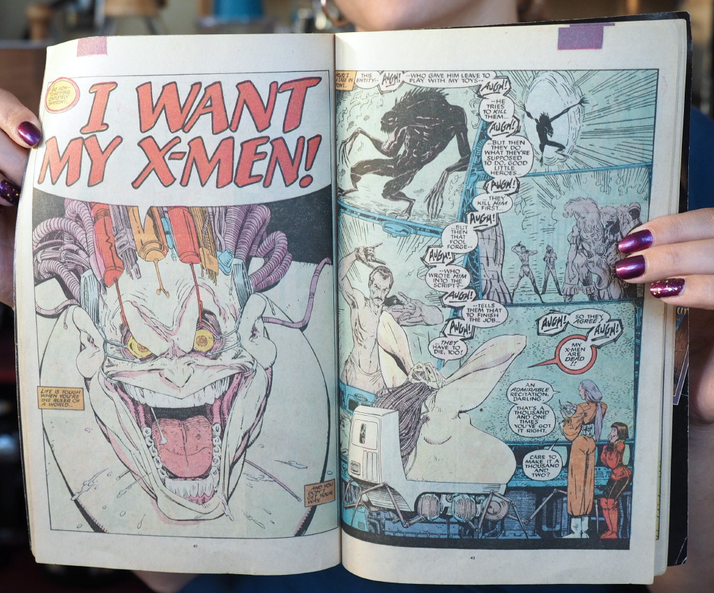 Jony drew the card card “heartwarming orphans” and thought that went appropriately with the Uncanny X-Men Annual #12 where Mojo created the X-Babies! She also shared an issue from the X-men cross-over “INFERNO”, featuring Mr. Sinister, the Goblin Queen, and Nas’tirh.