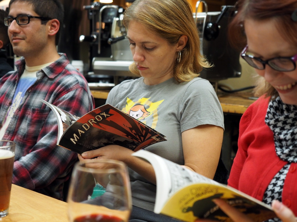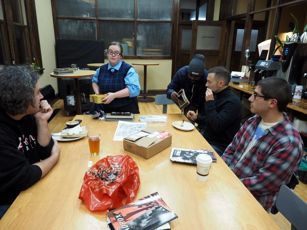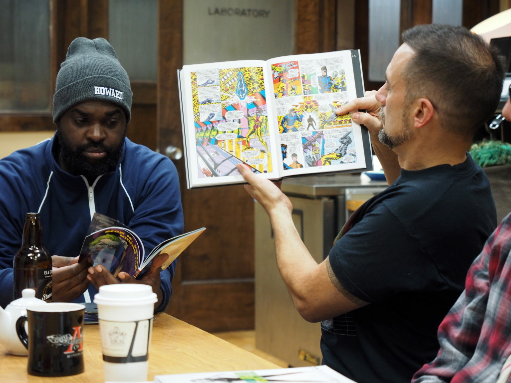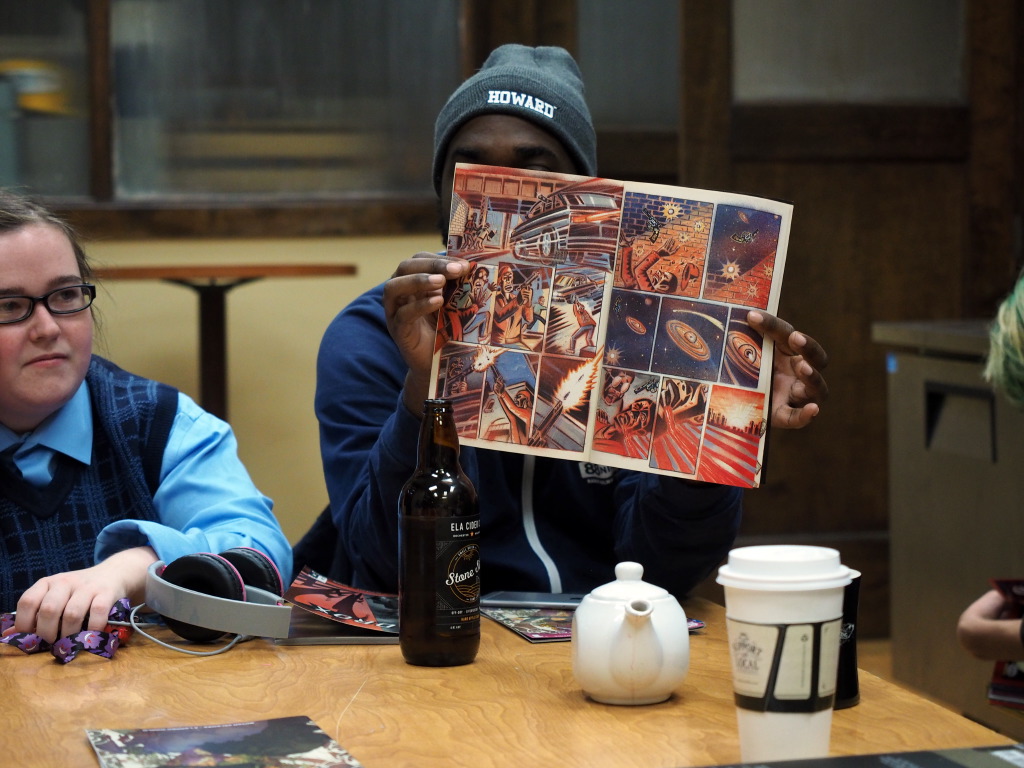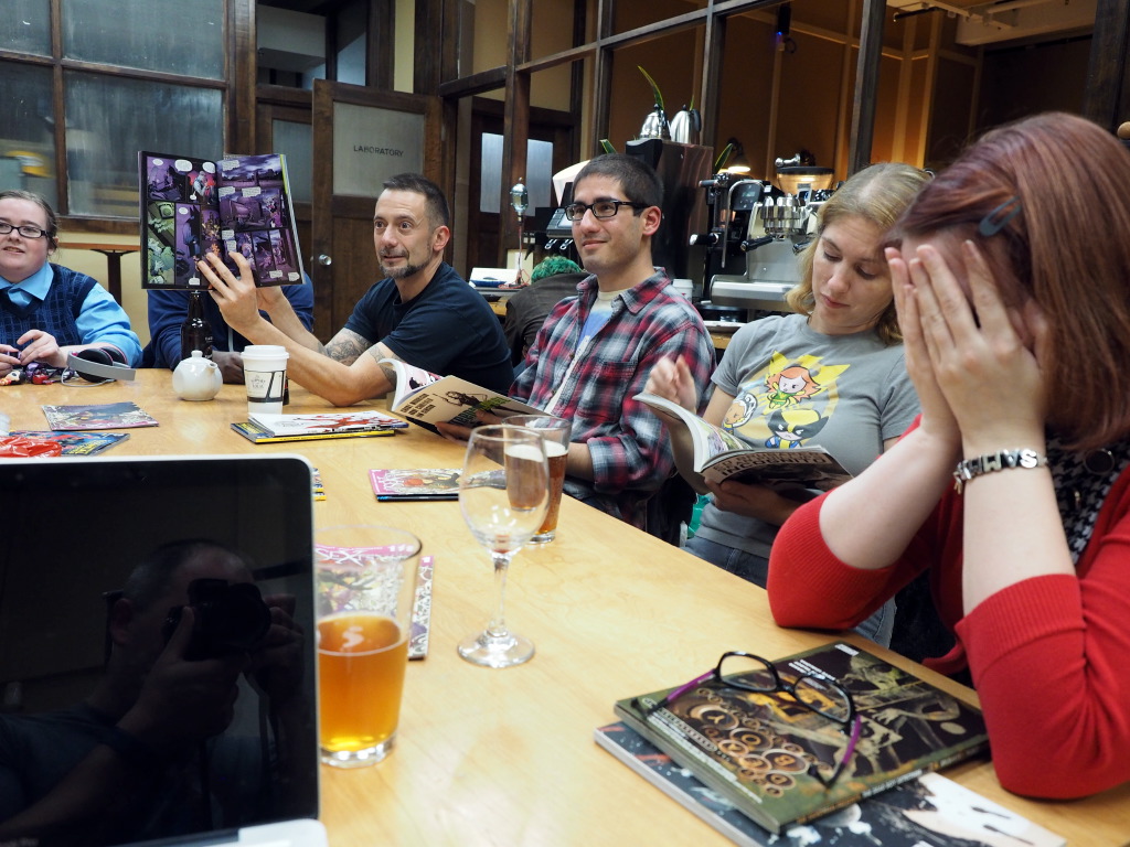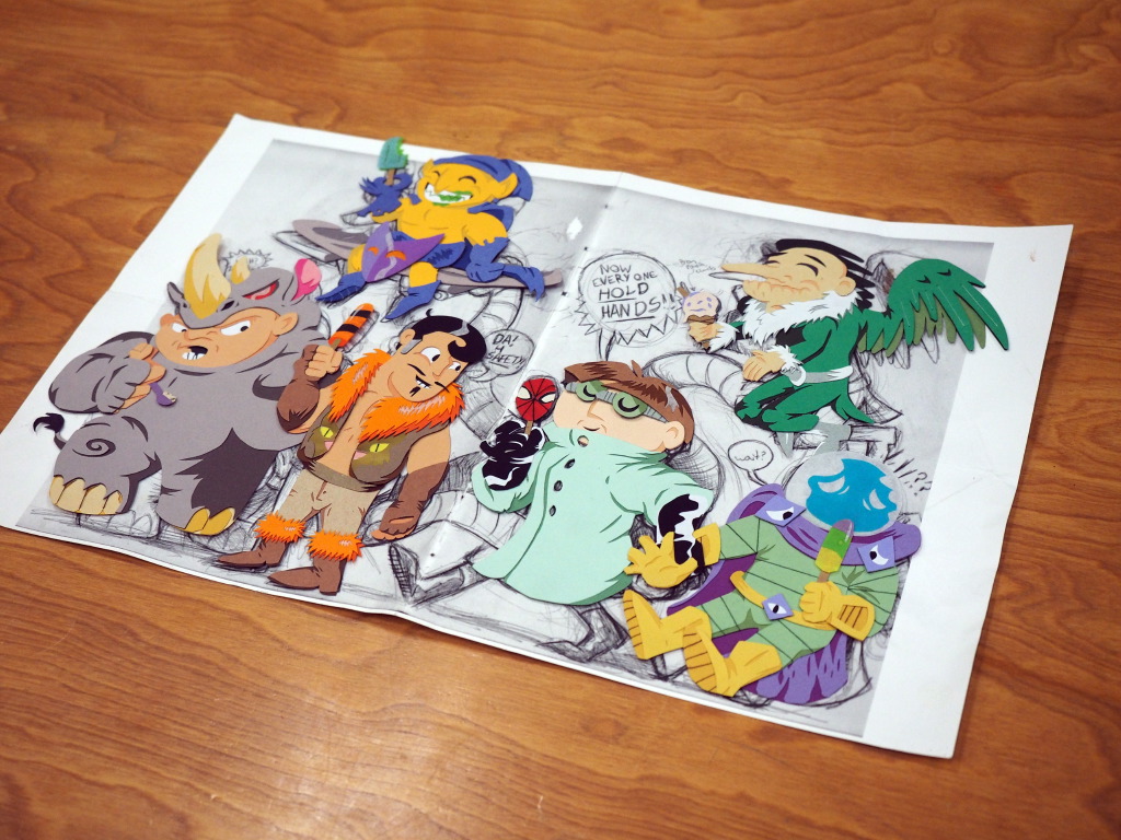 Before we got to sharing comicbooks, Amber, a very talented illustrator, shared with us her in-progress creation – a cut-paper illo of Spider-Man’s classic group of villains, the Sinister Six. Her attention to detail and unique vision were pretty amazing!