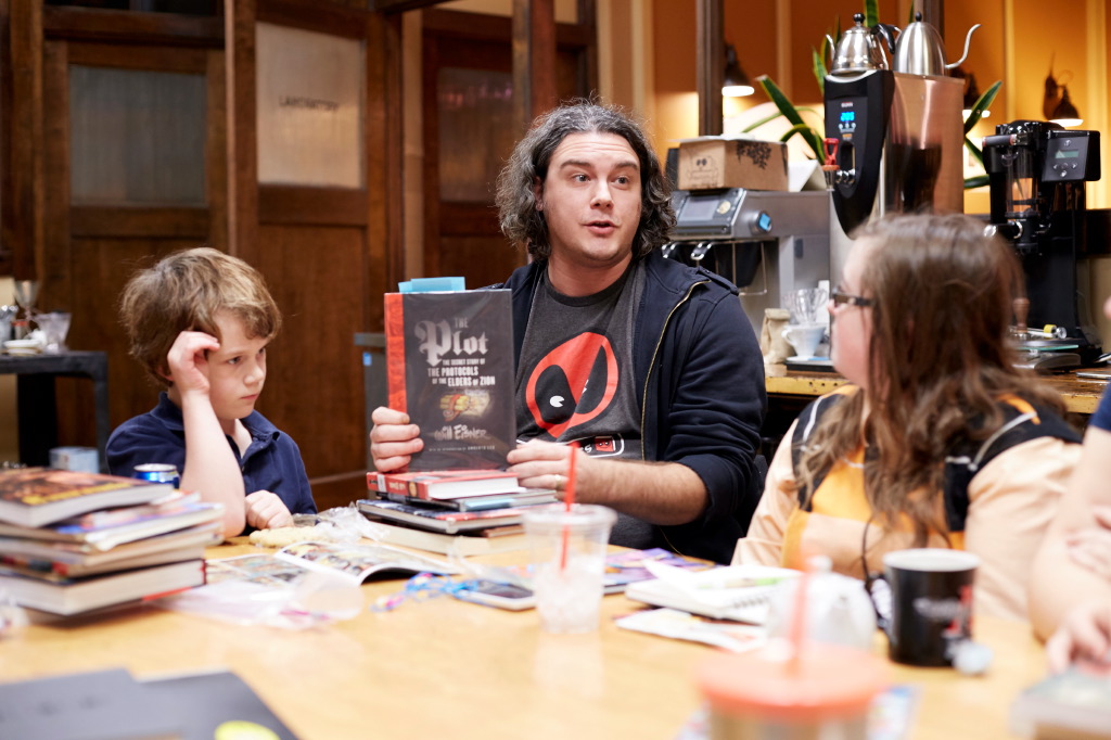 Luke didn’t have any books to share, but mentioned he’d wanted to bring “an issue of The Shadow, where “The Shadow meets The Spirits and accidentally down the Hindenberg!”