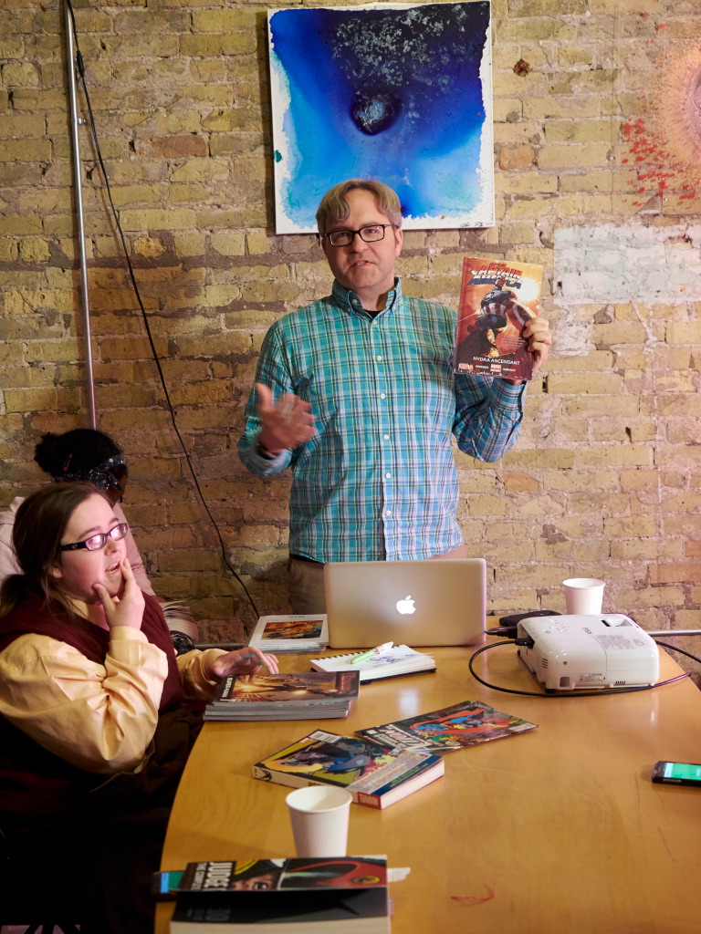MKE Comicbook is a Milwaukee-based meetup for teens-to-adult readers of comicbooks. It’s a discussion-based group, with each month focusing on a different topic! My buddy, Don, a high school English teacher, started the group, and he and I have been co-organizing it for over three years now!