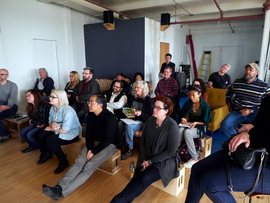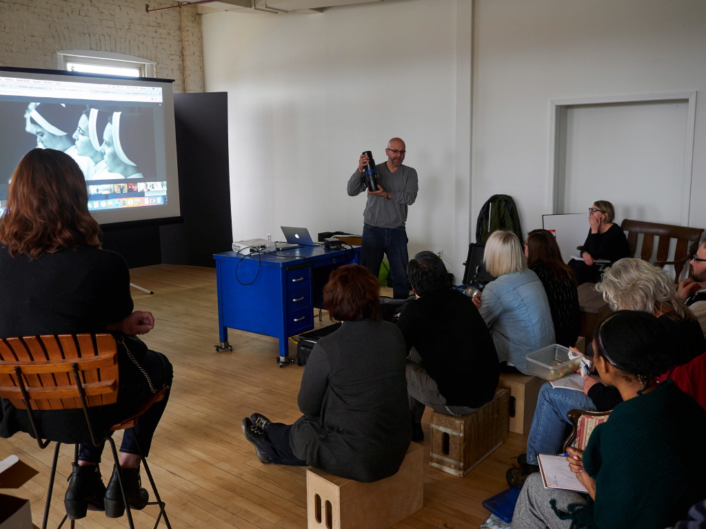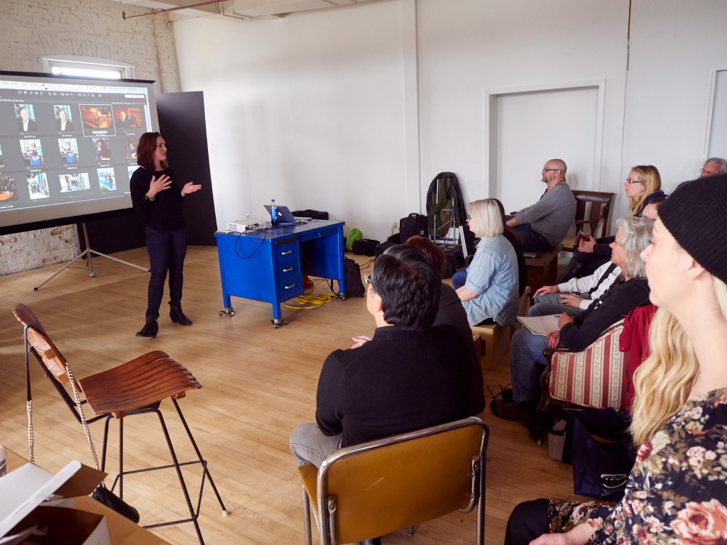 Jen Kessler spoke about the value she brings to a shoot as a hair-and-makeup stylist, and how that contributes to a shoot’s success. I spoke about my working style, and how much I appreciate a good battery-powered flash on my location shoots for corporate and editorial clients. Kevin talked about how much he loves available window light, or using lights to try and re-create that look for his magazine portraits. Deni impressed us all with the cleverness of her still-life photos, all made in a corner dining room! Doug really wowed us with his tips for traveling light, with a full light kit, when he’s working for university clients or political campaigns. Aliza shared her wedding and fashion images that were a mix of available and created light, and made with film cameras, her preferred type of camera.