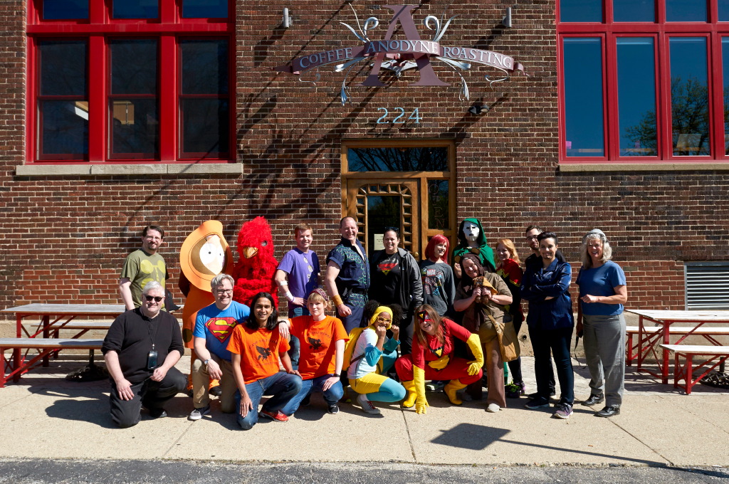 We had a beautiful day for the run/walk – sunny and cool. This time we were benefiting the folks at CORE El Centro, which is only a block away from our start/finish at Anodyne Coffee. CORE El Centro provides wholistic health services to people of income levels, and teach a variety of skills to improve peoples’ lives. I was quite happy that two staff members from CORE were able to attend the event; they were quite impressed, as this was their first exposure to “cosplay.”