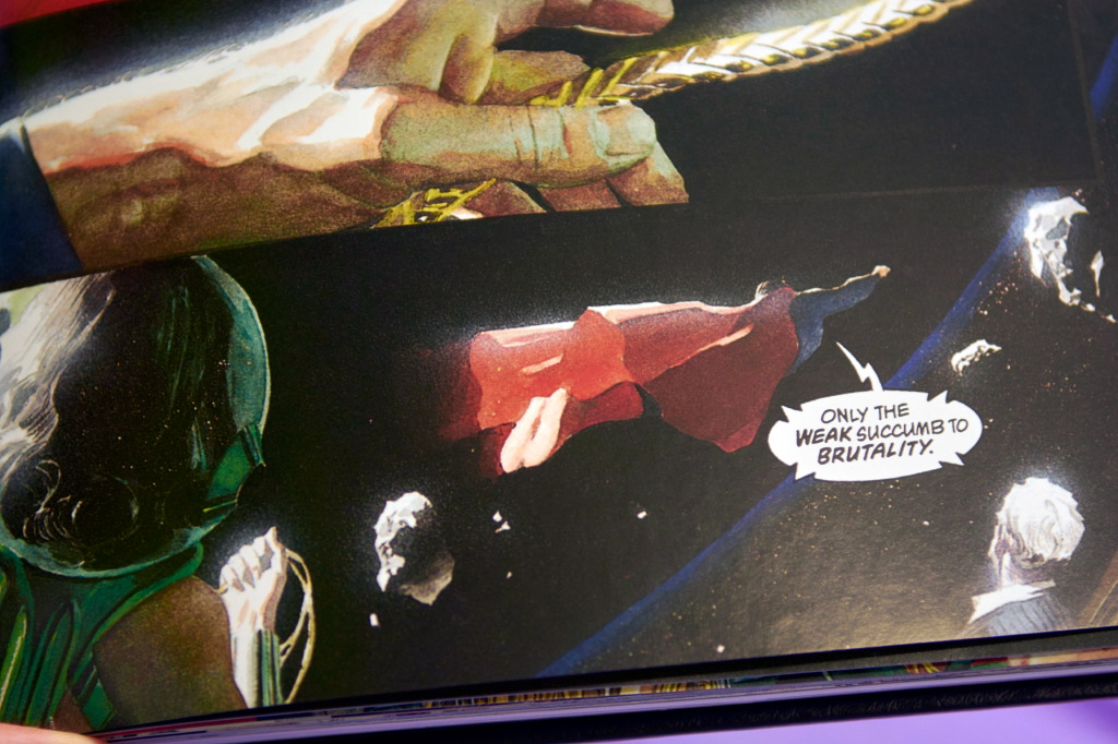 He was part of the KINGDOM COME crowd, and pointed out the anti-immigrant/refugee scene, where the Justice League redeems themselves by standing up “for the little guys.”