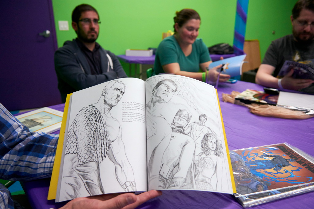 Though not a “redemption” story, Amber brought a book that interested us all – “Alex Ross: Rough Justice“, featuring many drawings from KINGDOM COME and other titles.