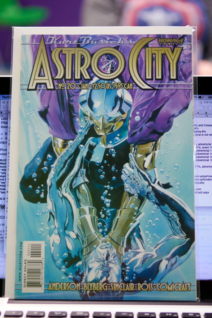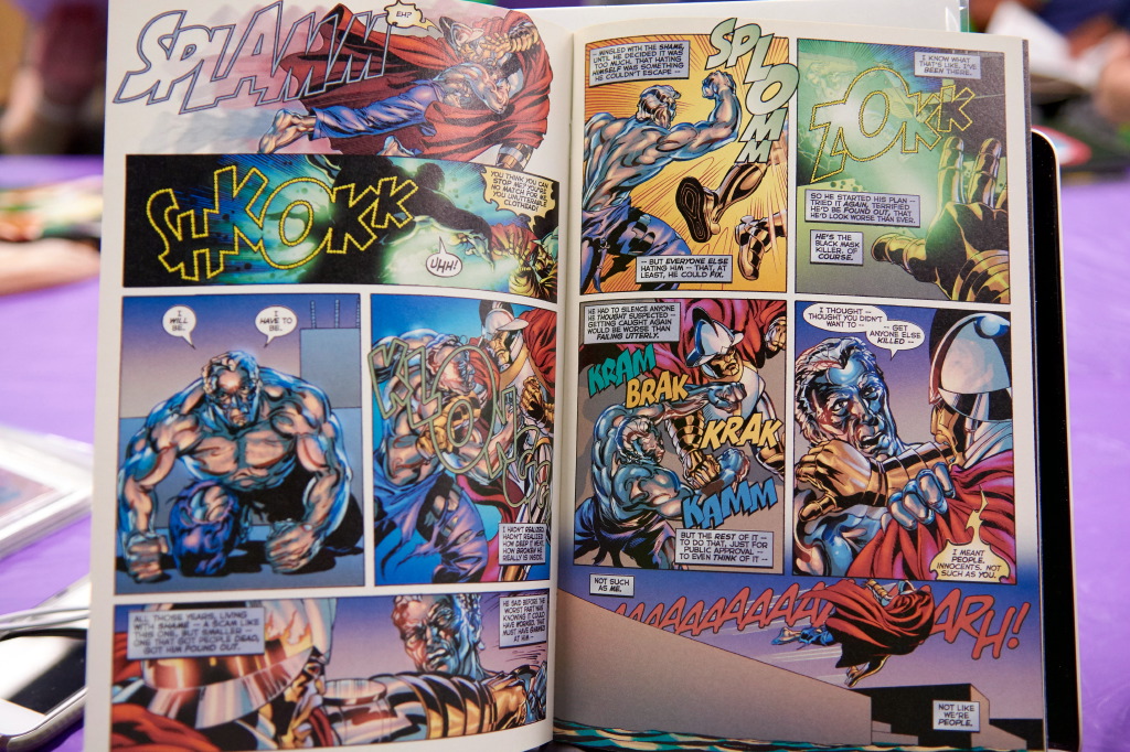 Xavier had some good books that definitely fit our theme. First up was the Kurt Busiek/Brent Anderson masterwork, ASTRO CITY. The story arc Xavier shared was the “story of Steel Jack, a sort of Spider-man-style villain, who’s now an ex-con, and whose neighbors turn to him for help in solving a series of kidnappings.” As Steel Jack tries to do right by his neighborhood, he discovers he >does< have something to offer the world.