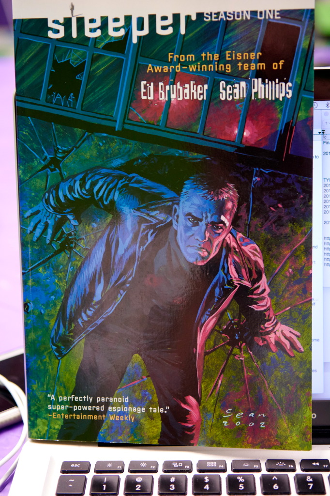 He shared an early collaboration of Ed Brubaker/Sean Phillips called SLEEPER, about an undercover super-cop, who gets stranded in his undercover role when his law-contact – the only person who knows he’s NOT a criminal – gets killed! This was an early work from Brubaker/Phillips who have gone on to become the sorta Dream Team of modern noir comicbooks!