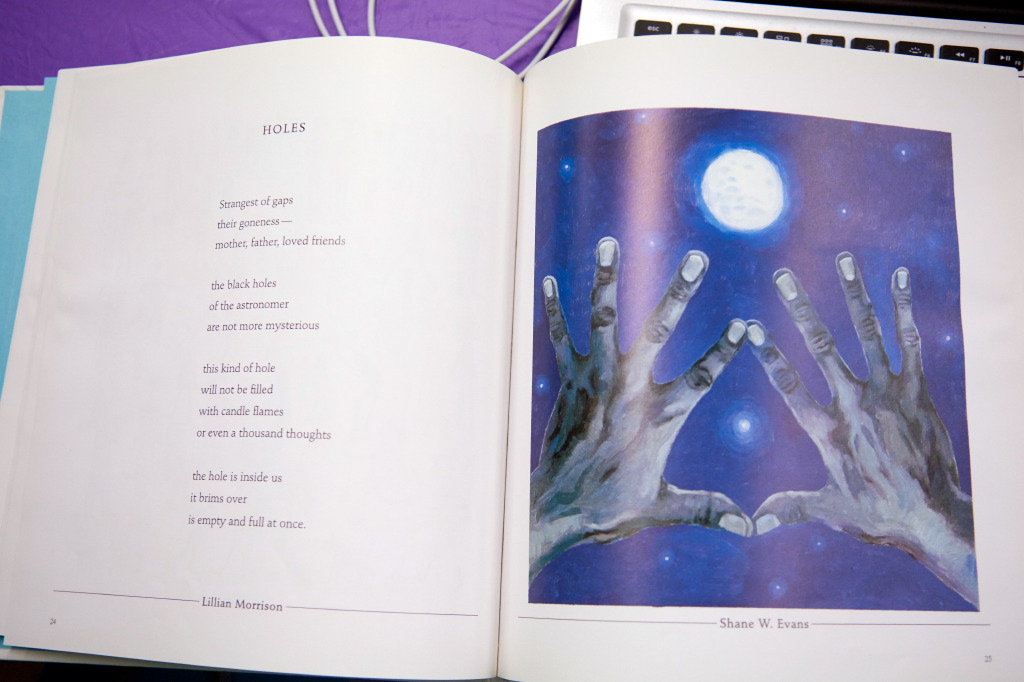 John shared two children’s books: THE WALL by Peter Sis, a story about Communist Czechoslovakia, and the author’s childhood there, and THIS PLACE I KNOW: POEMS OF COMFORT, a book he bought for his kids, but that he finds himself reading when he’s had a bad day.