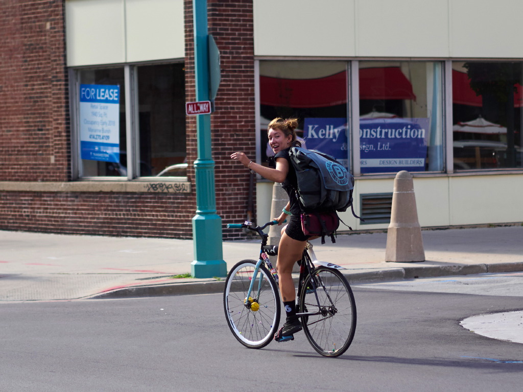 When the Riverwest 24, also known as The People’s Holiday, happened in late July, I hung out beneath the Marsupial Bridge, taking photos of the bikers as they passed. I shot many pics, a few turned out, and one or two stood out. I posted one of those pics, and luckily, someone who saw it, tagged the person depicted. That person, Sunniva, or “Sunny”, went on to win the women’s first place in the endurance race (and held the overall first place for a few hours, too!).