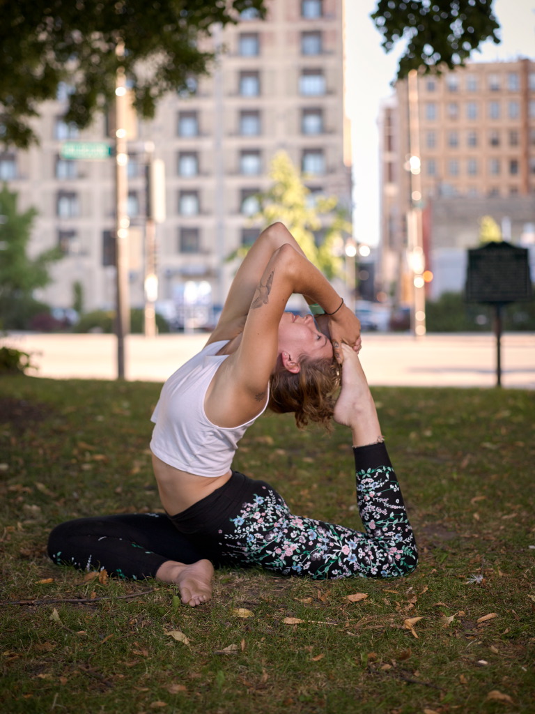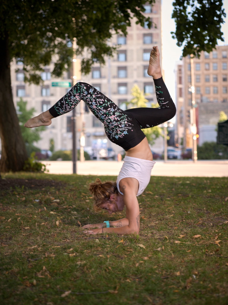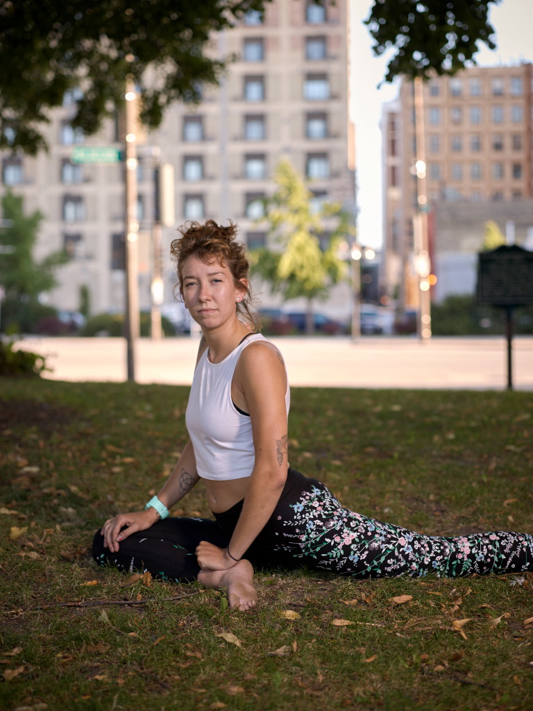 After that initial Instagram post, I asked if she’d be willing to sit down for an interview and portrait with me. We met on a sunny afternoon in Milwaukee’s Pere Marquette Park and talked about biking, yoga, mindfulness, and how to live your best life.