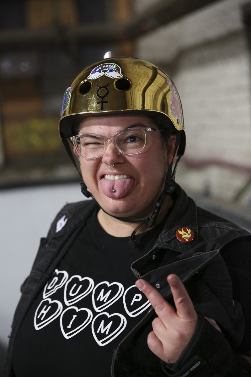 Has rolling changed you in ways outside the skatepark? Oh heck yes! I am a lot more happy and healthy. I find that my mental health has improved exponentially!! And that seems to be a shared experience with many of the folks we skate with. My confidence and capacity to make healthy lifestyle choices has improved. The relationship with my body has improved LOTS! I identify as a fat person, and it can be a very negative and limiting state of mind. But skating has shown me, proved to me, that my body is amazing, and that no matter the size and shape, I am strong and can do really amazing things. I’d also say that I have been very pleased with finding lots of queer family at the skate parks. I was surprised, but it was exactly the space that I wanted and needed to find my queer family. Not at a bar, but somewhere that we all were engaged in sharing the Stoke, investing in ourselves. I really feel like I’ve been able to sink into a more authentic queer identity since I started skating. I feel like I’m finding my home, you know.